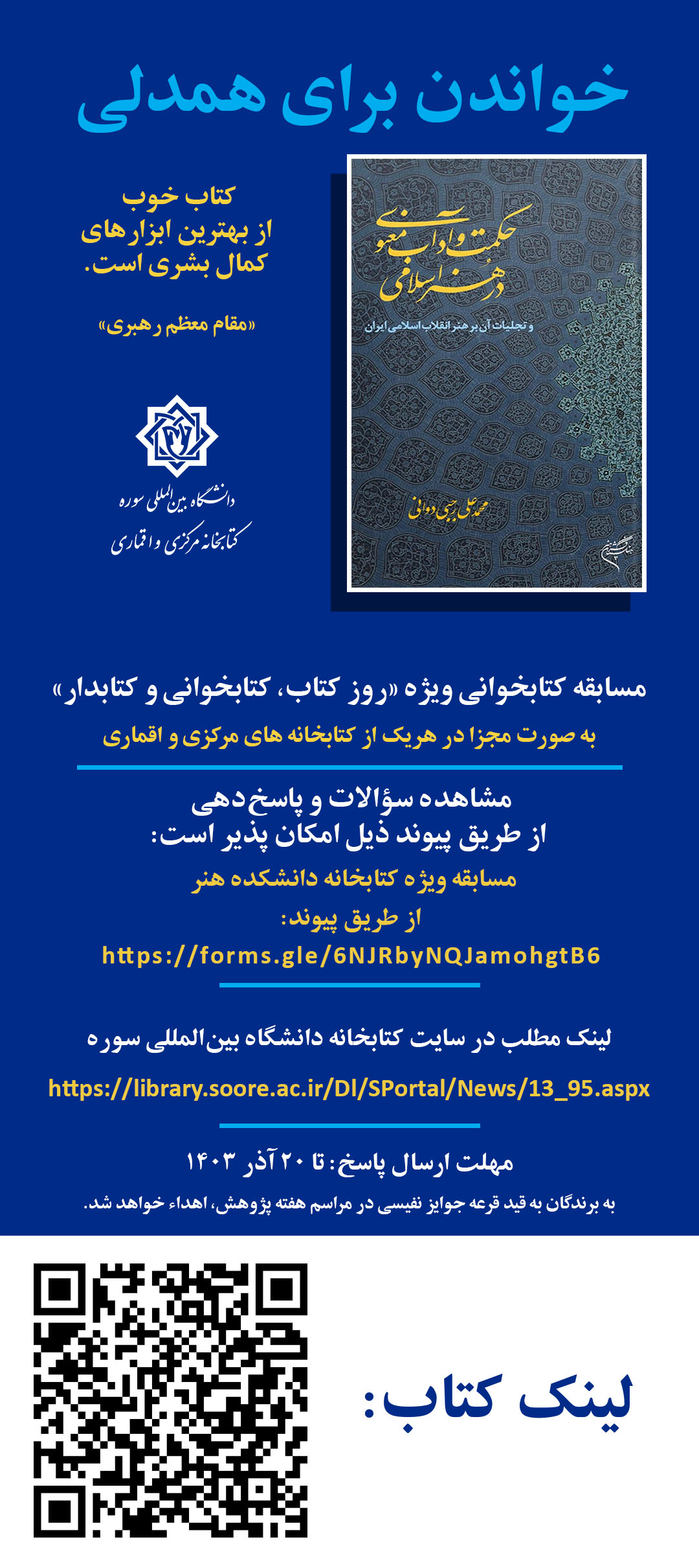 «بخوانیم برای ایران؛ مسابقه کتابخوانی، از هفته کتاب تا هفته پژوهش» معاونت پژوهش دانشگاه بینالمللی سوره به منا....