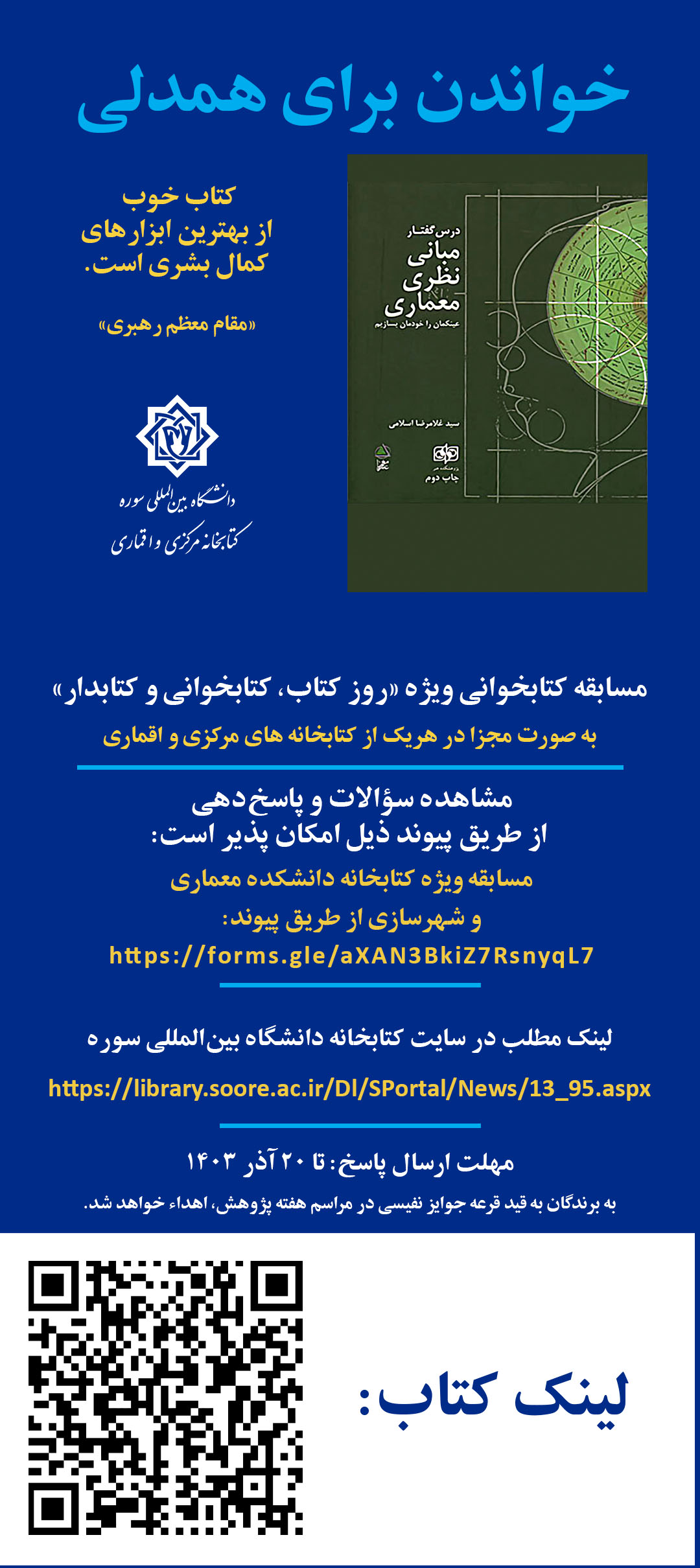 مسابقه ويژه كتابخانه دانشكده معماري و شهرسازي از طريق پيوند: